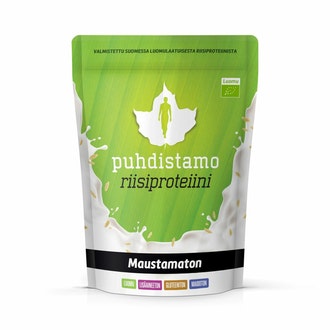 Puhdistamo riisiproteiini maustamaton 600g luomu on valmistettu Suomessa.