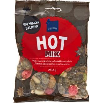 Rainbow Hot Mix on salmiakkimakeissekoitus, joka sisältää erilaisia vahvanmakuisia salmiakkimakeisia.
