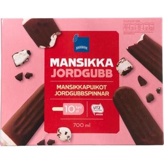 Rainbow mansikkapuikoissa on maukasta mansikkajäätelöä rapean suklaanmakuisen kuorrutteen alla. Pakkaus sisältää 10 kpl mansikkajäätelöpuikkoja.