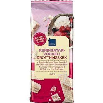 Vohvelikeksi mustikan- ja vadelmanmakuisella kreemitäytteellä.