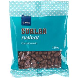 Rainbow suklaarusinat 150 g on valmistettu Suomessa.