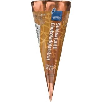Rainbow suklaan- ja vaniljanmakuista jäätelöä, suklaanmakuista kuorrutetta 12% ja karamellisoituja hasselpähkinöitä sisältävä kaakaokoristelu 1,4% vohvelissa.