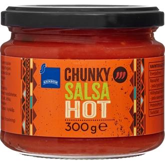 Rainbow Chunky Salsa Hot on tulinen tomaattipohjainen kastike, joka sopii texmex-ruokiin, dippaamiseen tai muuhun ruoanvalmistukseen, esim. liha- ja jauheliharuokiin ja lisäkkeeksi.
