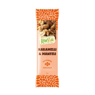 Rawsom pähkinäpatukka 40g karamelli & manteli sisältää seuraavia ainesosia: