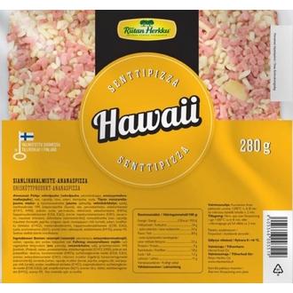 Riitan Herkku Senttipizza Hawaii 280g sisältää 218 kilokaloria per 100g. Koko 280g pakkaus sisältää yhteensä 610 kcal.