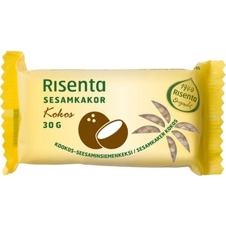 Risenta kookos-seesaminsiemenkeksi 30g sisältää seuraavia ainesosia:
