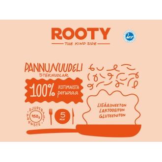 ROOTY Pannunuudeli on uuden ajan innovatiivinen pakastetuote. Se valmistetaan tuoreesta suomalaisesta perunasta patentoidulla menetelmällä ilman lisäaineita. Uutuustuotetta voi keittää, paistaa tai wokata rakenteen pysyessä ehjänä.