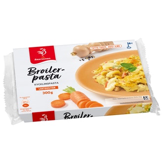 Saarioinen Broilerpasta 300g sisältää 120 kilokaloria per 100g. Koko 300g pakkaus sisältää yhteensä 360 kcal.