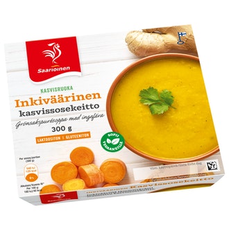 Saarioinen inkiväärinen kasvissosekeitto 300g on valmistettu Suomessa.