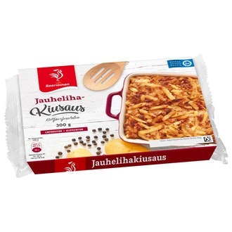 Saarioinen Jauhelihakiusaus 300g sisältää 130 kilokaloria per 100g. Koko 300g pakkaus sisältää yhteensä 390 kcal.