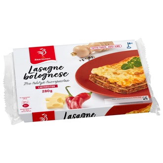 Saarioinen lasagne bolognese 280g on valmistettu Suomessa.