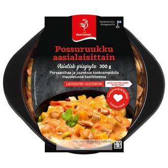Saarioinen possuruukku aasialaisittain 300g on valmistettu Suomessa.
