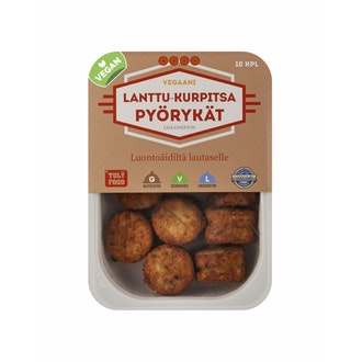 Lanttu 48%, kurpitsa 17%, teksturoitu herneproteiini, vesi, härkäpapujauho, kuidut (psylliumkuitu, hernekuitu), perunatärkkelys, maissitärkkelys, rapsiöljy, sipuli, valkopippuri, porkkana, ruohosipuli, persilja, suola, mustapippuri, valkosipuli, murskattu chili, muskottipähkinä.
