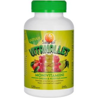 Sana-sol Vitanallet on pehmeä ja pureskeltava monivitamiini. Sisältää yhdeksän elimistölle tärkeää vitamiinia. Pakkauksessa kaksi koostumukseltaan samaa, mutta maultaan erilaista Vitanallea. Mukana ovat omenan ja päärynän makuiset Vitanallet.