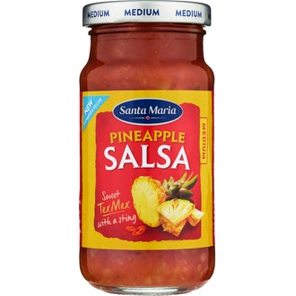Santa Maria Pineapple Salsa on mausteinen ja makea salsakastike, jossa on raikas tomaatin ja ananaksen maku sekä aavistus korianteria. Makea ja silti mausteinen maku, joka sopii täydellisesti tacoihin, texmexiin ja muihin meksikolaisiin herkkuihin. Santa Maria Pineapple Salsa toimii mainiosti myös dippikastikkeeksi nachoille, tortillalastuille ja muille naposteltaville.
