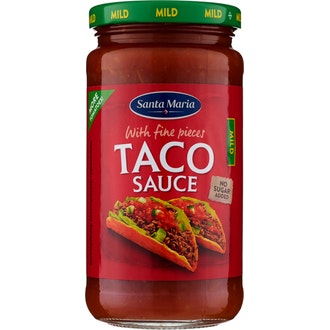 Santa Maria 350g Taco Sauce mild sisältää 34 kilokaloria per 100g. Koko 350g pakkaus sisältää yhteensä 119 kcal.