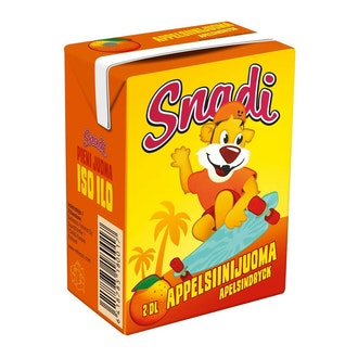 Snadi juoma 2dl appelsiini on valmistettu Suomessa.
