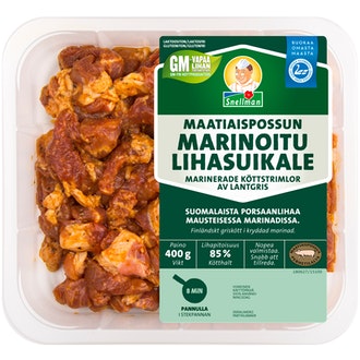 Snellman maatiaispossun lihasuikale 400g marinoitu on valmistettu Suomessa.