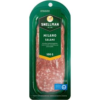 Snellmanin Milano salami on aromikas italialaistyyppinen salami herkutteluun, pizzaan tai leivälle. Aromaattinen maku syntyy ilmakuivauksen, tarkkaan valikoitujen mausteiden sekä tavallista suurempien rasvapartikkelien tuloksena. Tehty Pietarsaaressa suomalaisesta lihasta.