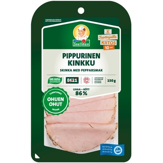 Snellman Pippurinen kinkku ohuen ohut 150g sisältää seuraavia ainesosia: