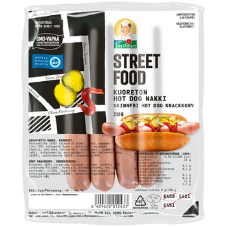 Snellman Street food hot dog deli 230g on valmistettu Suomessa.