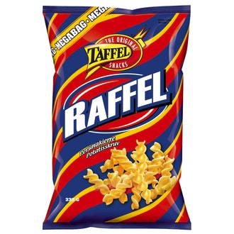 Suosittu Raffel on kaikkien makumuistiin porautunut herkullinen sipsi, joka saa kielesi makunystyrät heräämään. Rouskuvan rapeassa Raffelissa maistuvat pehmeät perunat ja juuri sopiva suolaisuus. Klassikko.