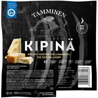 Kotimainen Tamminen Kipinä® kolmen juuston grillimakkara 4kpl 360g on valmistettu Suomessa.