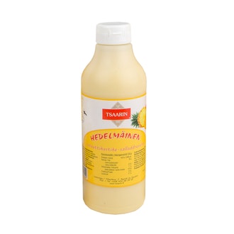 Rypsiöljy, vesi, ananasmehu, mango, appelsiinimehu, viinietikka, SINAPPI, sokeri, KANANMUNANKELTUAINEN, suola, mausteet, sakeuttamisaineet guarkumi ja ksantaanikumi, säilöntäainenatriumbentsoaatti.