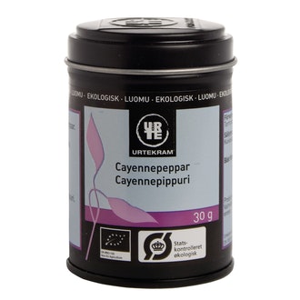Urtekram cayennepippuri 30g luomu sisältää seuraavia ainesosia: