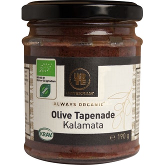 Urtekram Luomu Kalamata-oliivitapenade 190g sisältää seuraavia ainesosia: