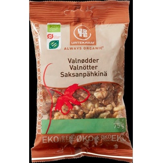 Urtekram saksanpähkinä 75g luomu sisältää seuraavia ainesosia: