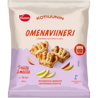 Vaasan Kotiuunin Omenaviineri on klassikkoviineri, jonka sisälle on leivottu kanelista omenapalatäytettä. Leivottu Suomessa, Joutsenon leipomossamme.