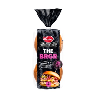 Vaasan THE BRGR Naughty burgerisämpylä 4st/320g on valmistettu Suomessa.