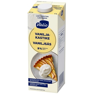 Valio vaahtoutuva vaniljakastike 9 % 1 l UHT laktoositon sisältää seuraavia ainesosia: