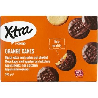 Xtra-appelsiinileivoskekseissä on pehmeän leivospohjan päällä appelsiinin makuista marmeladia ja tummaa suklaata.