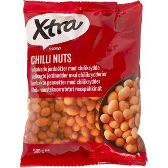 Xtra chilipähkinät 500 g sisältää seuraavia ainesosia: