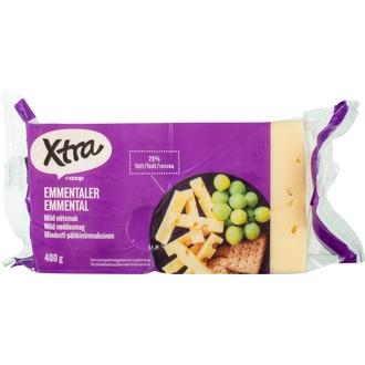 Xtra Emmental on monikäyttöinen puolikova juusto. Se sopii leivän päälle ja antaa makua ruoanvalmistuksessa sekä leivonnassa. Juustossa on rasvaa 29 %.