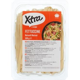 Xtra Fettuccine maustamaton tuorepasta on durumvehnäjauhoista ja kananmunasta valmistettua nauhapastaa.