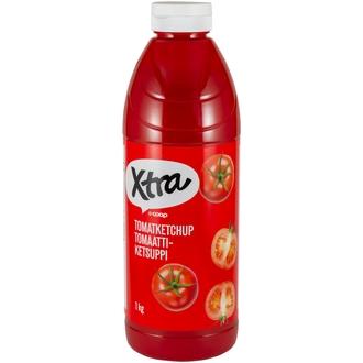 Xtra-tomaattiketsuppi 1 kg. 100 g:aan ketsuppia on käytetty 116 g tuoreita tomaatteja.