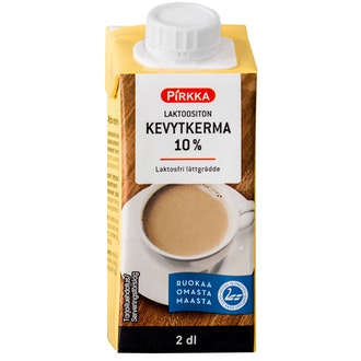 Pirkka laktoositon kevytkerma 10% 2dl sisältää seuraavia ainesosia: